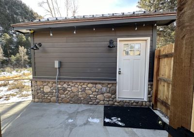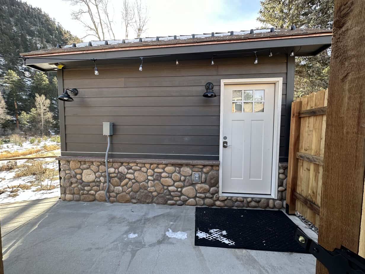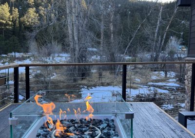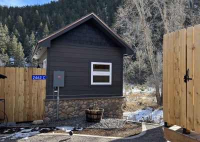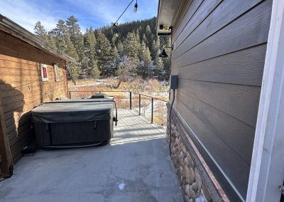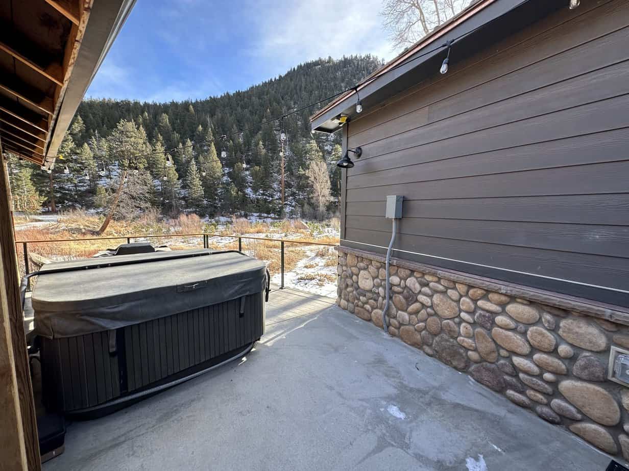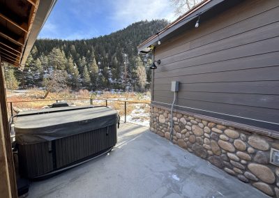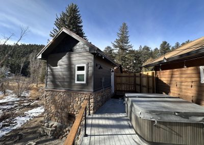 Our Romantic Cottage is the closest to the River and you can hear and see the river from many of its windows. Enjoy the Gas fireplace while snuggled in bed and your hot tub is on a deck that overlooks the river and is just steps from your bedroom. A full kitchen allows you to fix your meals or you are just a few minutes into Estes Park. This cozy Cottage is all any couple needs when visiting the mountains!