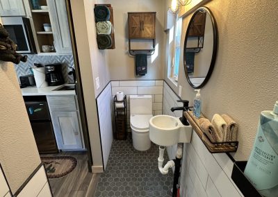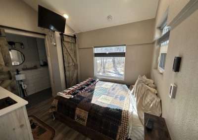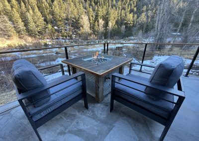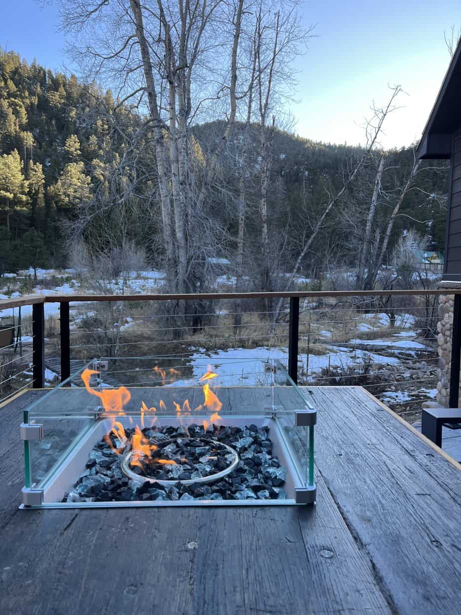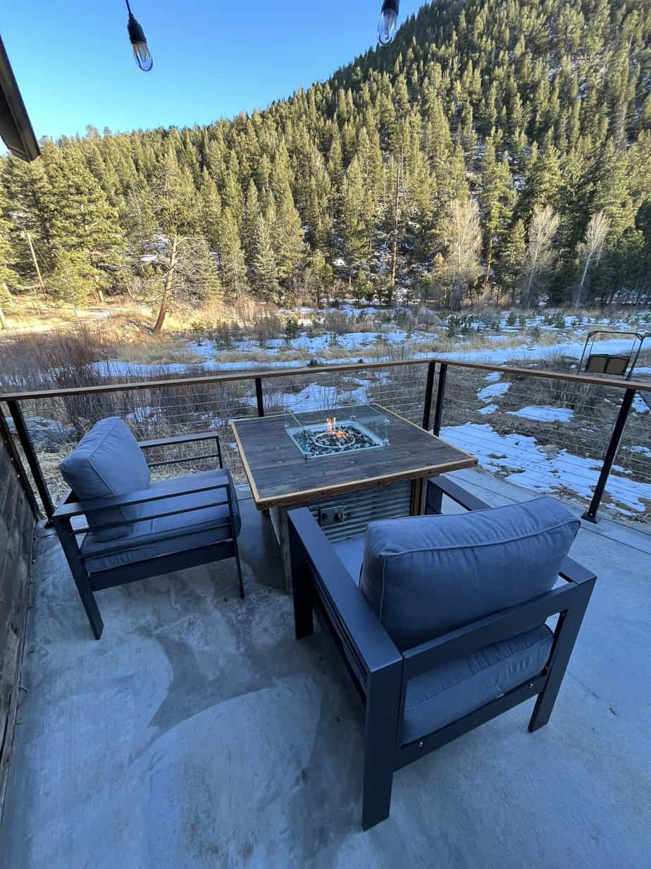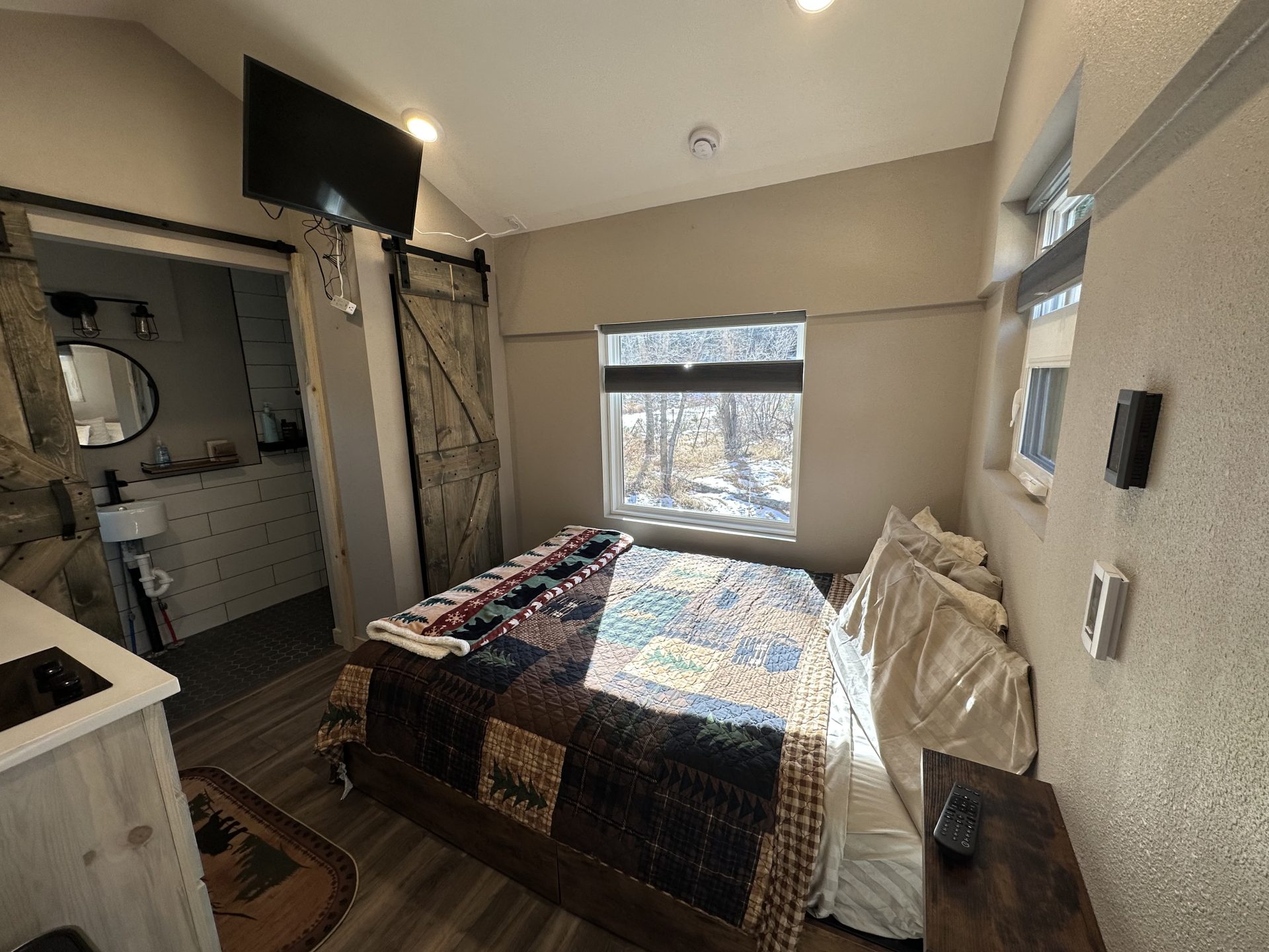 Our Romantic Cottage is the closest to the River and you can hear and see the river from many of its windows. Enjoy the Gas fireplace while snuggled in bed and your hot tub is on a deck that overlooks the river and is just steps from your bedroom. A full kitchen allows you to fix your meals or you are just a few minutes into Estes Park. This cozy Cottage is all any couple needs when visiting the mountains!